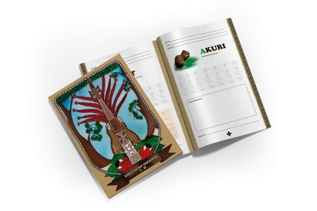 Projeto gráfico e diagramação, para o Idesam, de material didático voltado para crianças da educação infantil da etnia Sateré-Mawé, inteiramente em sua língua materna.